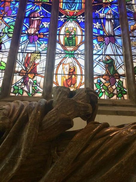 Both the window and the new plinth for the Jesse effigy were designed and created by former pupils of the Prince’s School of Traditional Art. The Prince is also patron of St Mary’s Priory.