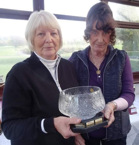 Pictured is Sheila Francis (left) receiving a trophy from Lady Captain June Street.